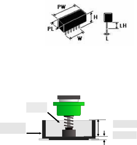 请输入插入元件外形尺寸 横(PW)、纵(PL)、元件高度(H)、引脚长度(LH)。