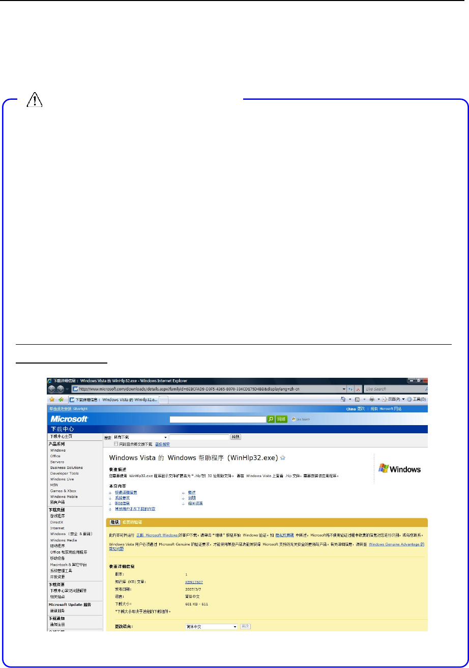 使用Windows Vista时,为启用应用程序的帮助功能,需要以下文件。