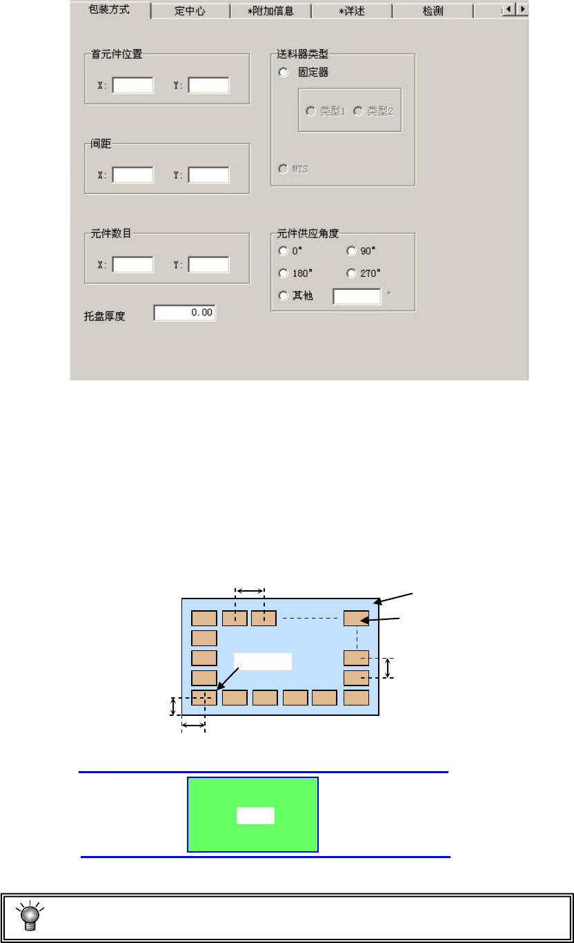 输入从托盘外形到首元件的中心位置的距离(X、Y)。