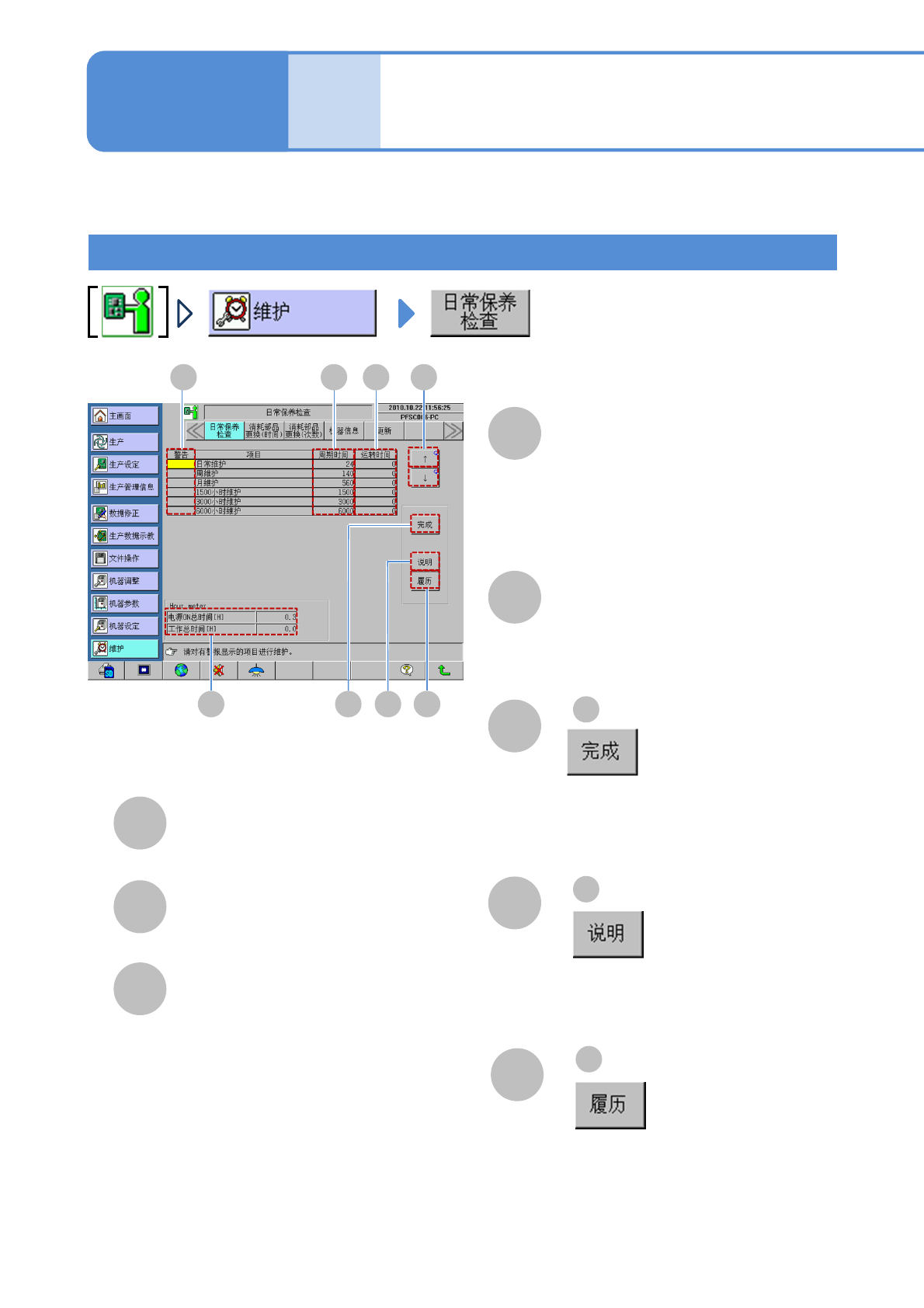 ●可以确认这个周期必须进行的保养项目。