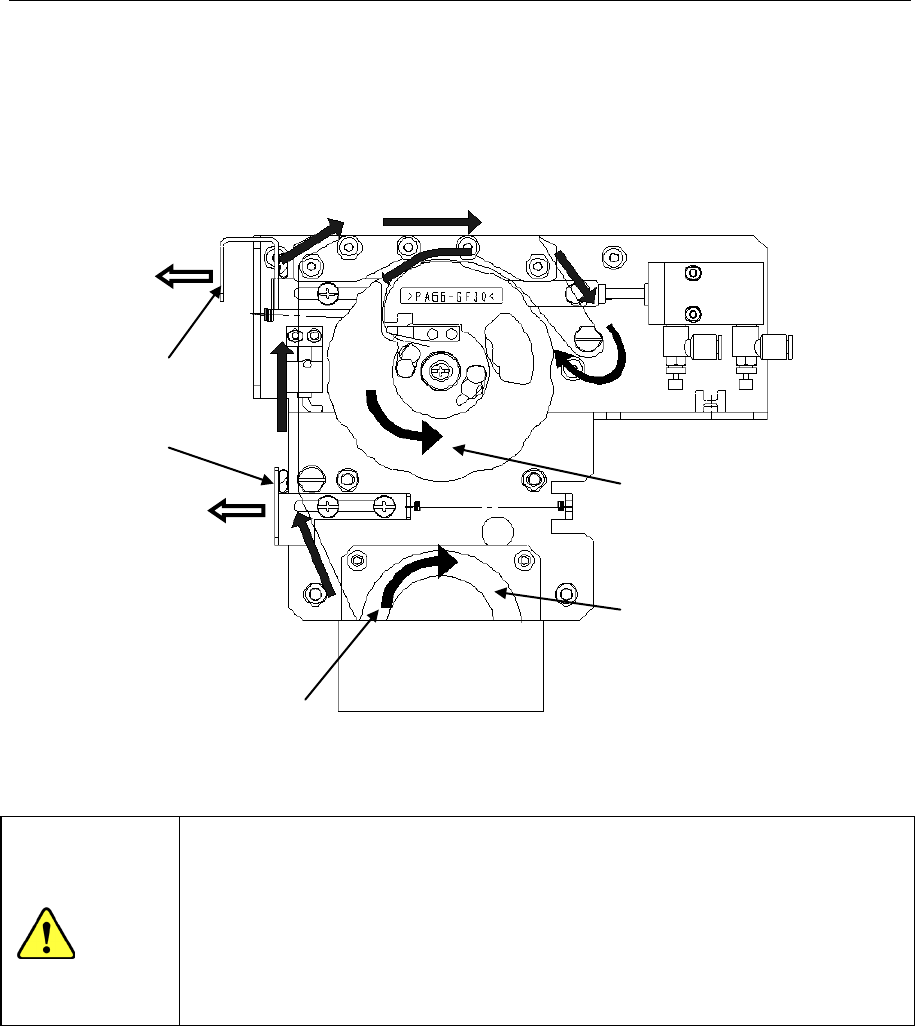 第 1 部 基本篇 第 2 章 生产 2 - 24 2-7-2 准备试胶聚酯带 以下说明试胶 聚酯带的 更换 方法。 请使用专用的试 胶 聚酯带 。 ( 品名 E393980200 0) 安装聚酯带后,请参考“ 8-4-3-2 其它传感器”,卷绕聚酯带确认卷绕是否顺畅。 ( 如 果巻轴或试胶聚 酯带打滑 ,将无法卷绕聚 酯带发生 报警 ) 图 2-7-2- 1 试胶聚酯带的安装 选择更换胶粘剂后 点胶头立即移 动。 为避免人身伤害,在运…