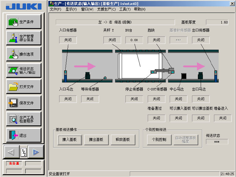 列「生产」—「传送·I/O 状态」画面,介绍从画面上进行调整的方法。在执行自动基板