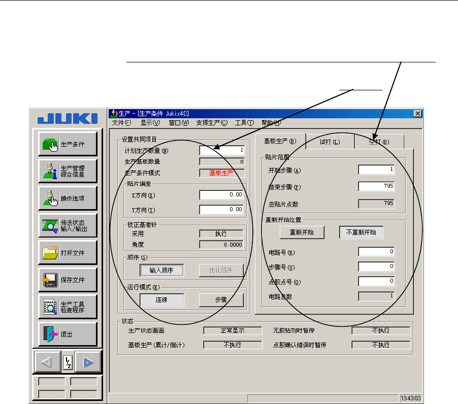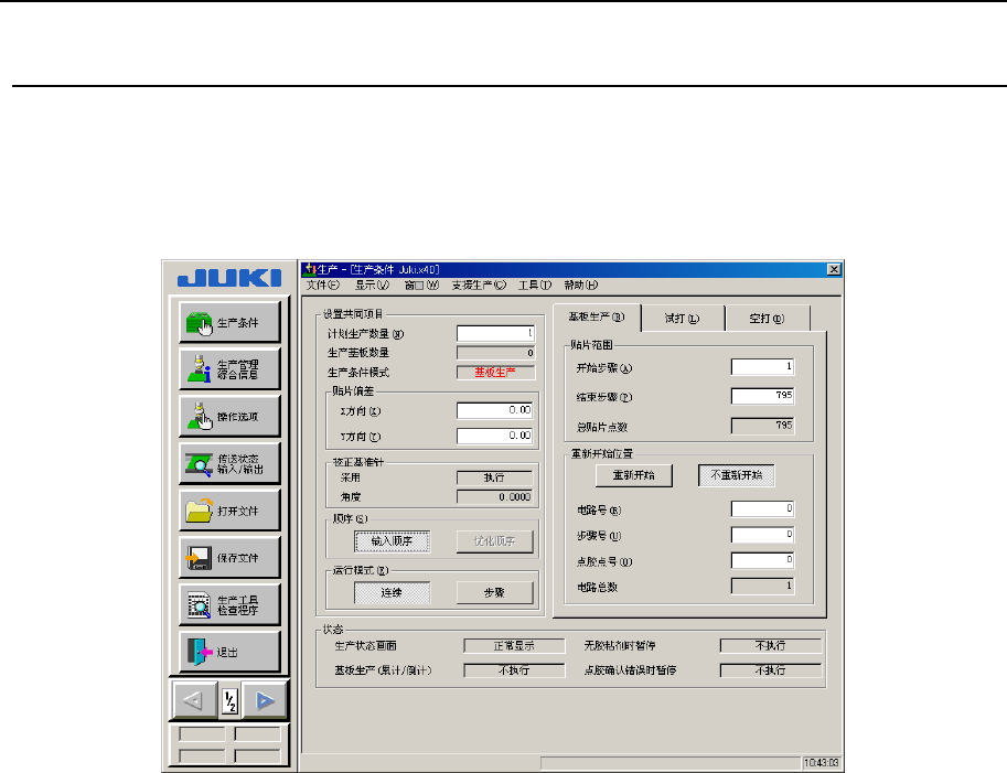 根据“基板生产”、“试打”、“空打”各种生产模式,分别设定各自的生产条件。