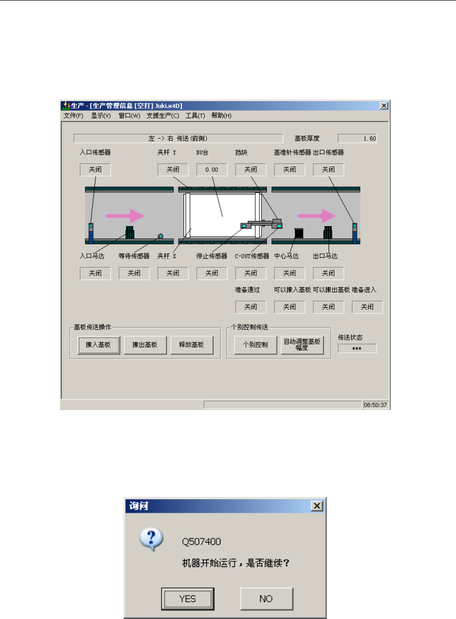 选择“YES”,则轴移动到待机位置,开始基板搬入/搬出,或基板固定解除运行。
