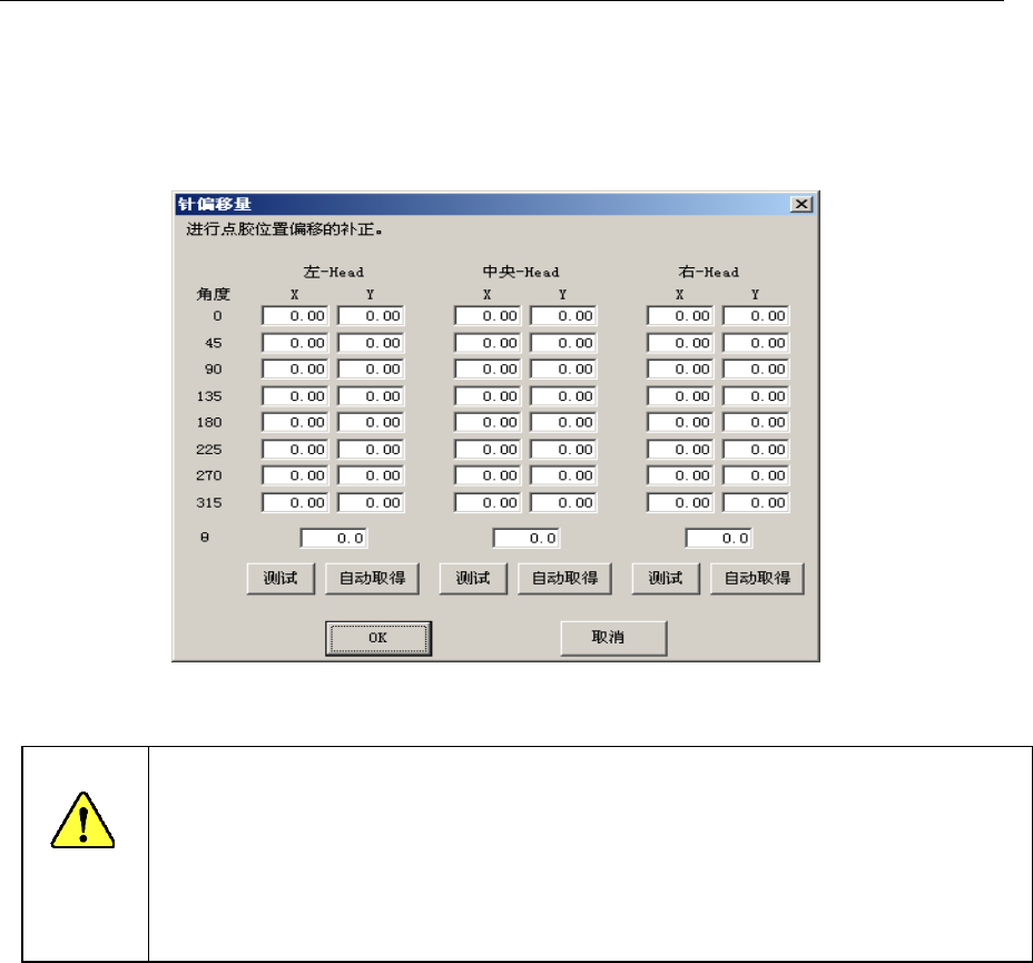 在菜单栏选择「工具」/「点胶头的设定」/「针偏移量」,则显示以下所示的针偏移量画