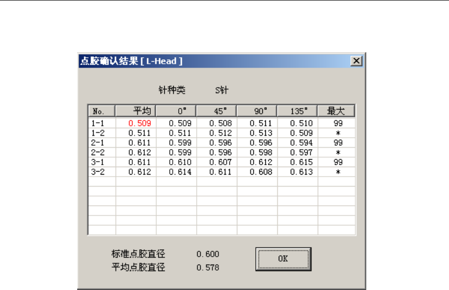从菜单栏上选择「工具」/「点胶确认结果」,将显示点胶确认画面。