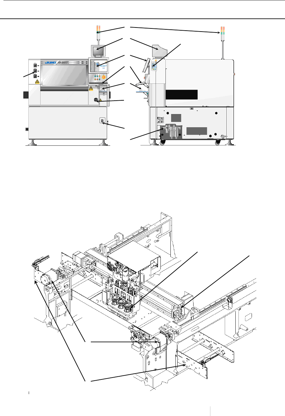 第 1 部 基本篇 第 1 章 设备概要 1 - 3 1-1-3 系统构成 1-1-3-1 系统构成 KD - 207 7 电源单元 异常停止按钮 漏电断路器 *1 UPS *1 CPU 端口 I/O 控制单元 安全控制单元 马达控制单元 外体 X-Y 位置决定装置 点胶头 温度调节器 气压机器配管系统 点胶直径确认单元 (附带聚酯带单元) 外部抽气单元 基盘传送装置 EPU (外部编程装置) 液晶显示器 SSD (固态硬盘) 鼠标 键…