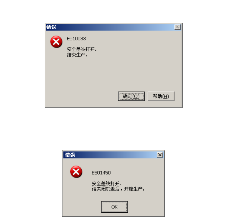 在生产动作中打开安全盖时,会显示以下信息,现在正在生产的基板被强制结束。