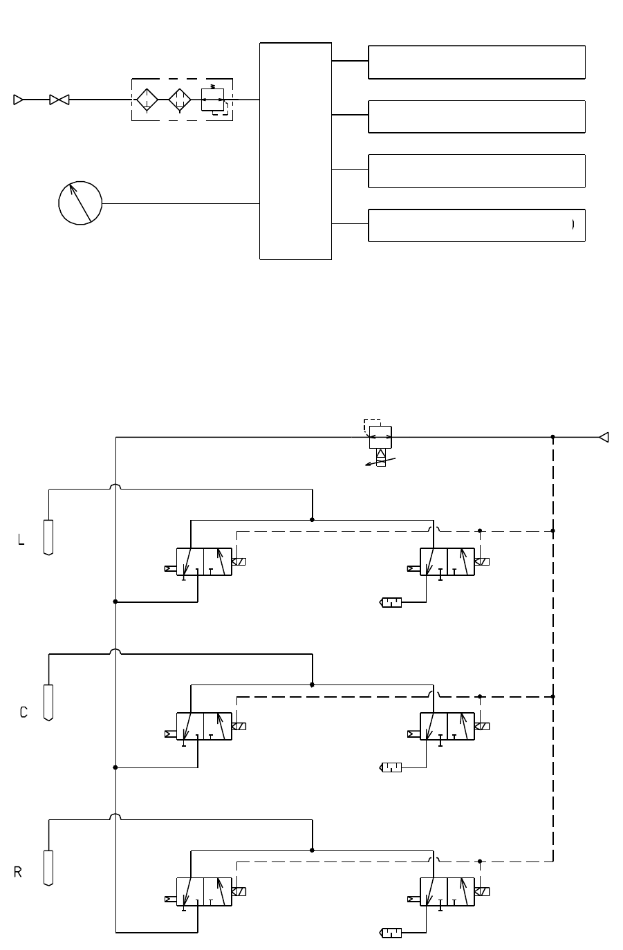 第 1 部 基本篇 第 3 章 维护 3 - 4 配管系统图 (全体 ) 点胶头点胶电路 点胶头选择器电路 基板传送、试胶单元 抽气单元(可选项) 点胶头点胶电路图 多路接口模块