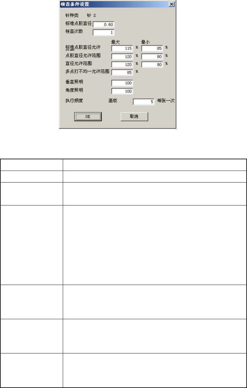 为了判定检査的每一个点胶点的点胶直径,所设定的检査合格范