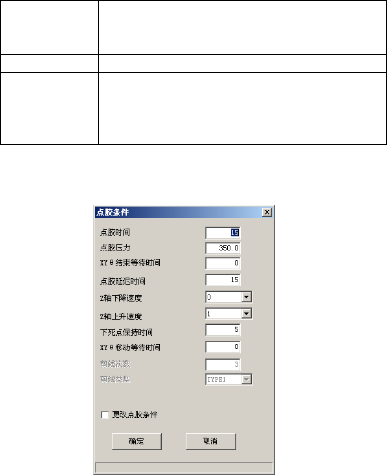 各项目的详细内容,请参考“4-3-6-3 点胶条件的设定”。