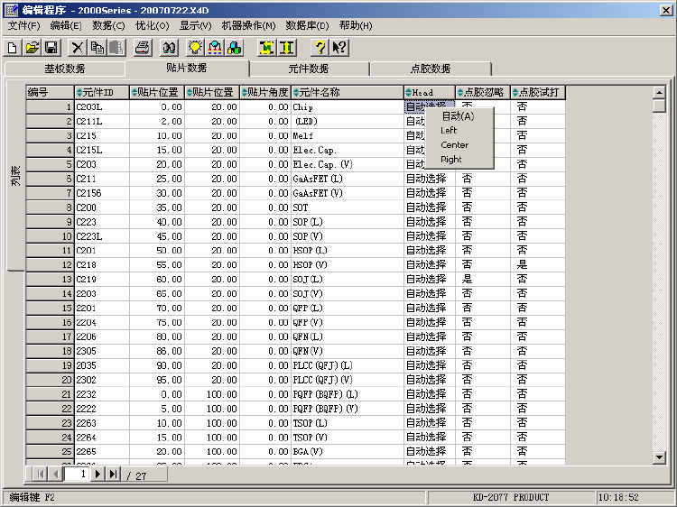 选择点胶头时,请按编辑键(键盘的[F2]键)或鼠标的右键,从一览表中选择。另外,在选