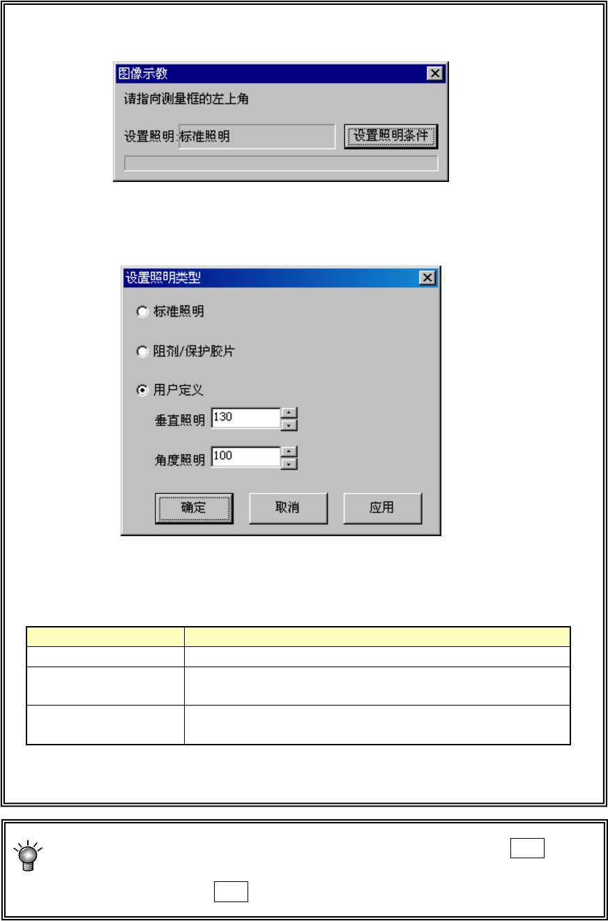 ※ 设置照明条件,选择用户定义时,一般设置在50~200之间。设置50 以下时,