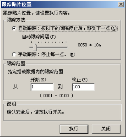 设置所有跟踪条件,准备完成后,按下<开始>开关或「执行」。