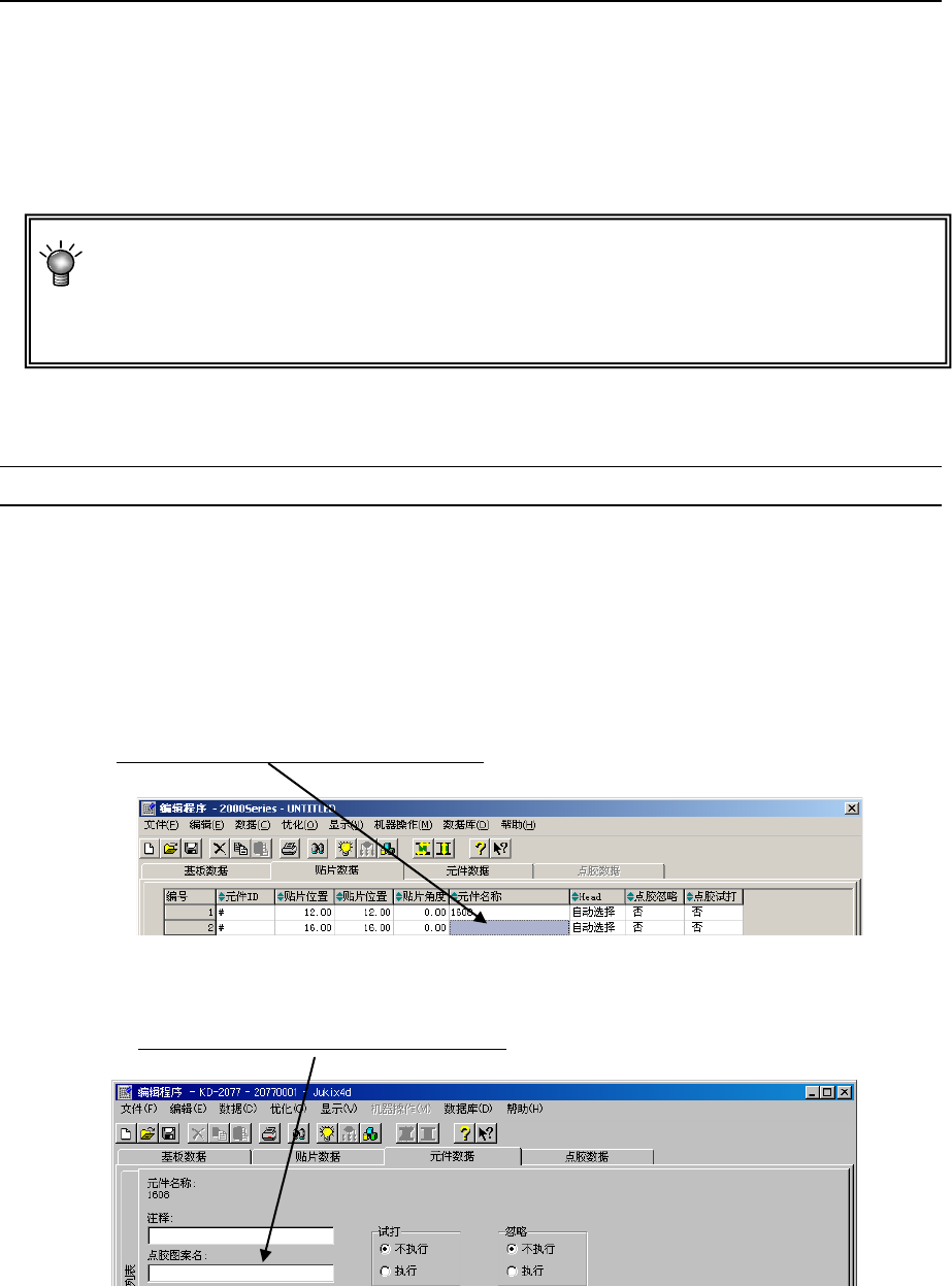 此外,在数据库没有注册元件名,而点胶图形名已经注册在数据库中时,只需在「元件数