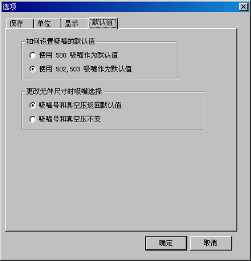 在“500号吸嘴”与“502·503号吸嘴”中指定要使用的吸嘴。在这里指定后,制作数