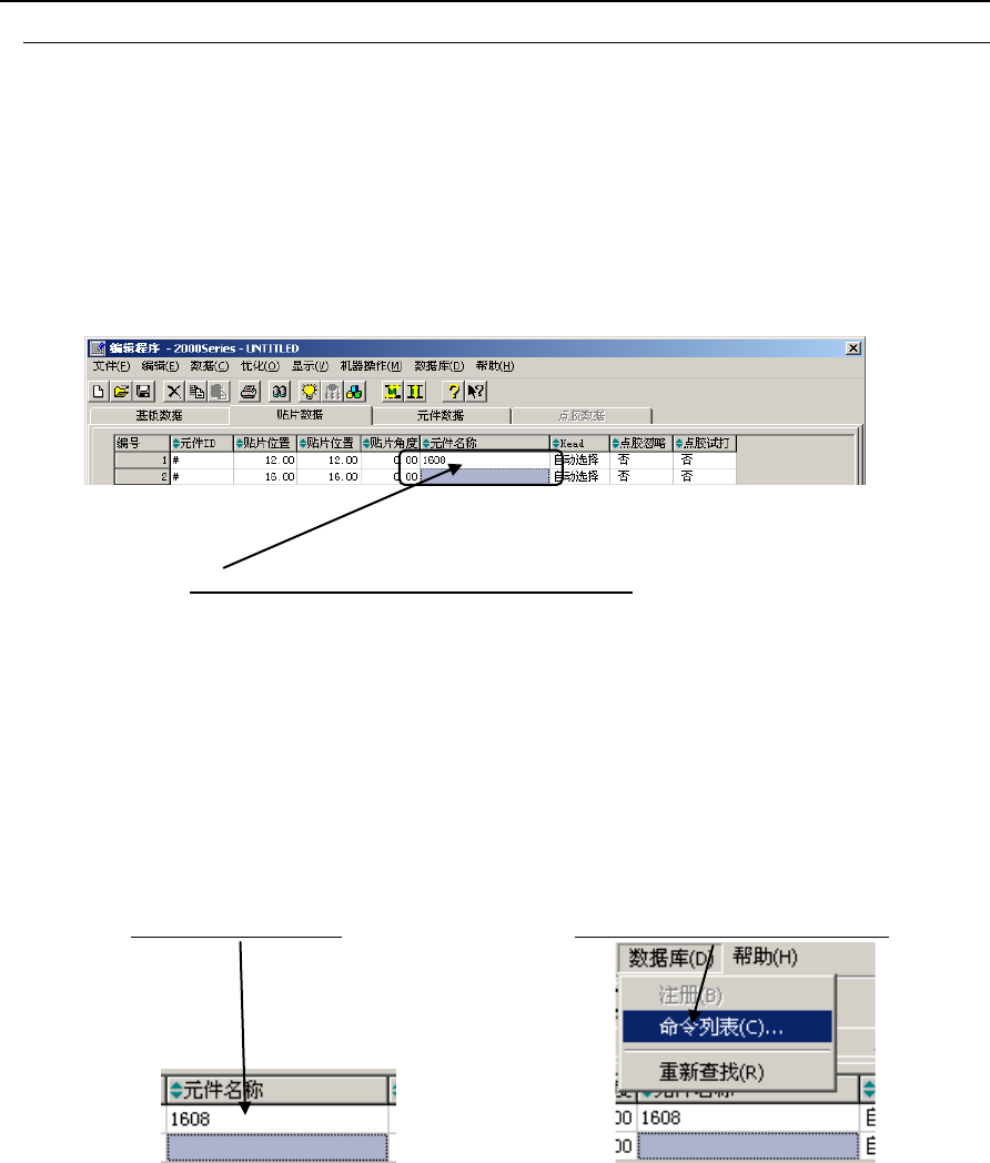 元件名未被输入的状态下,可从贴片数据,选择命令列表。