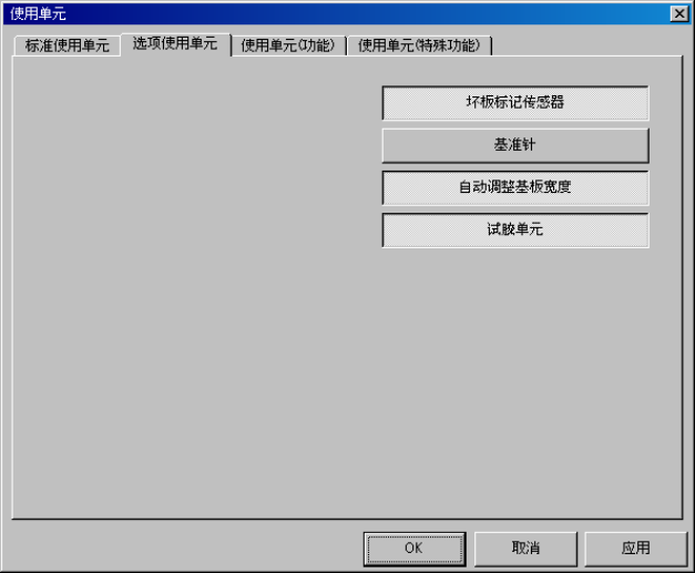 可以点击各标签,指 定 [标准使用单元]、[选项使用单元]、[使用单元(功能)]、[使用单元(特