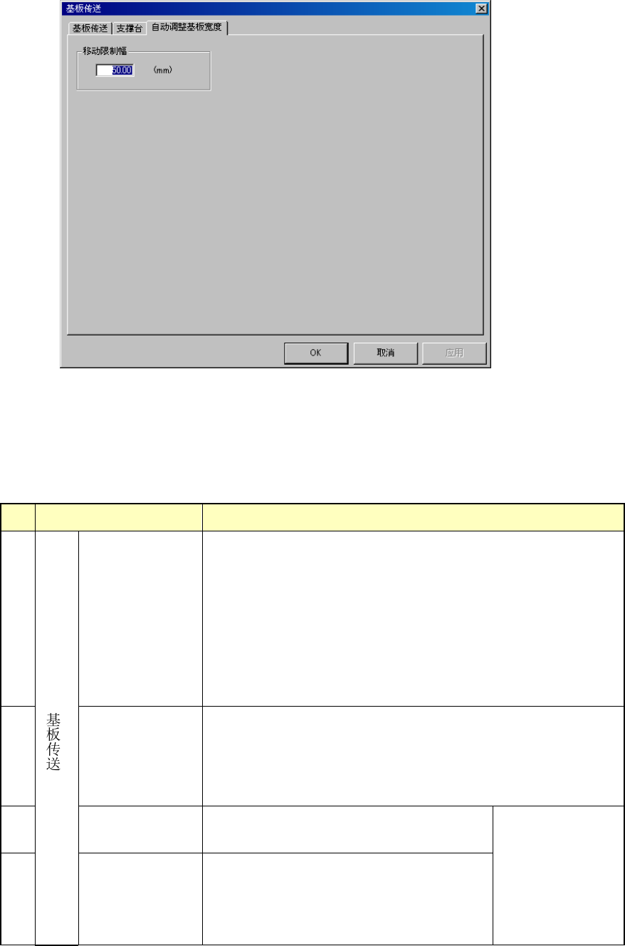 在自动基板宽度调整画面可以设置限制移动的宽度在 50~360