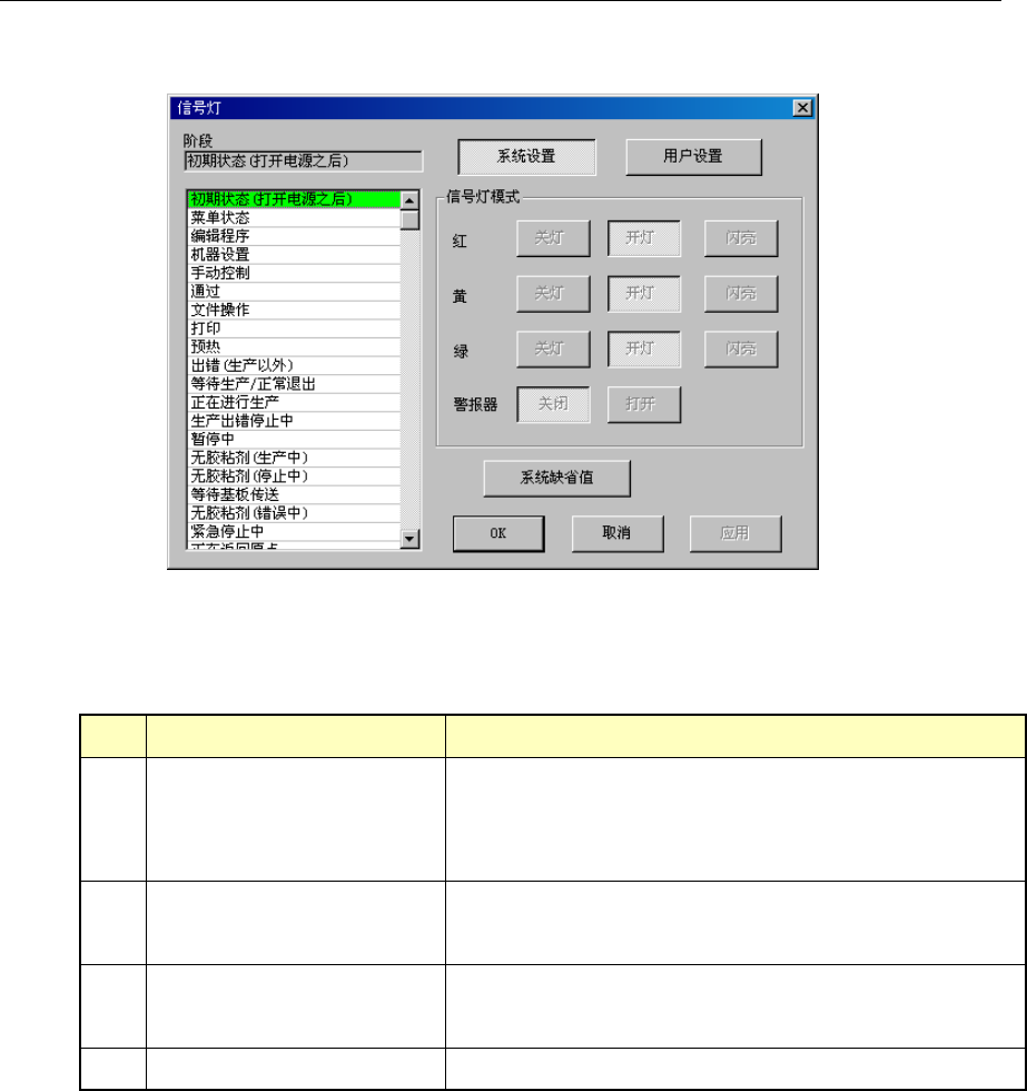 设置各操作阶段的信号灯的点亮式样。