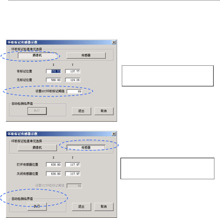 选择坏板标记传感器示教,则显示如下图所示的[坏板标记传感器示教]设置画面。从[摄像