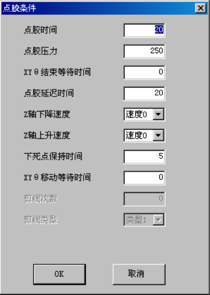 按下<取消>按钮,则放弃更改的数值,结束点胶条件设置。