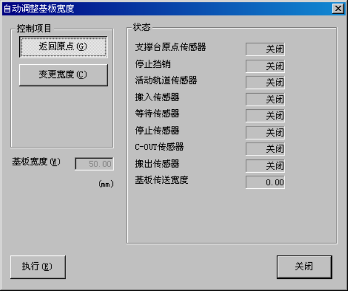 调整基板宽度」,则显示如下的自动基板宽度调整控制画面。