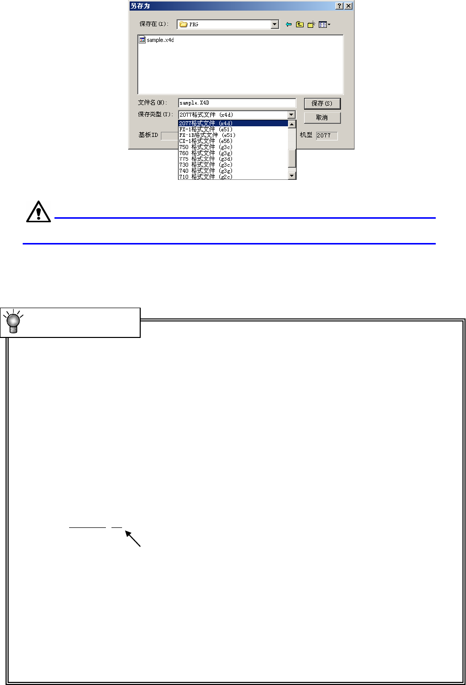 若要用其他机种的文件类型保存生产程序时,请选择「文件类型」后,再点击「保存」。
