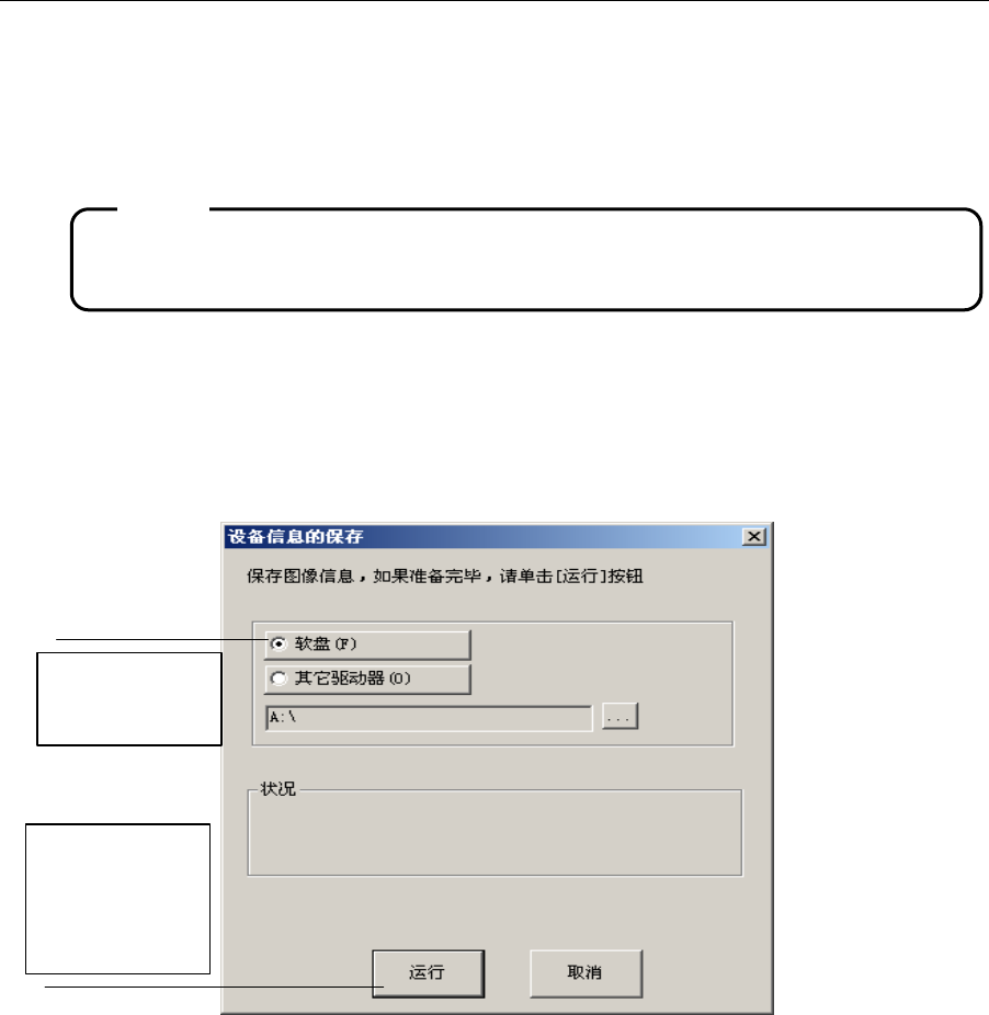 (2) 选择「软盘(F)」,按下「运行」按钮后,设备即开始压缩设备信息,并保存在软盘里。