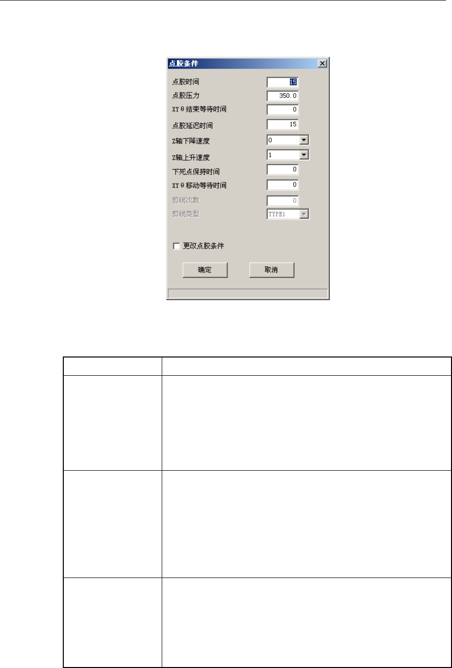 表 4-3-6-3-1 点胶条件设定项目