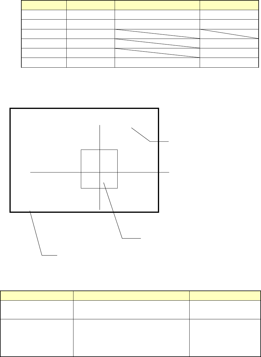 如下表所示,根据元件尺寸,显示在监视器中的元件中心及四角的显示有所不同。