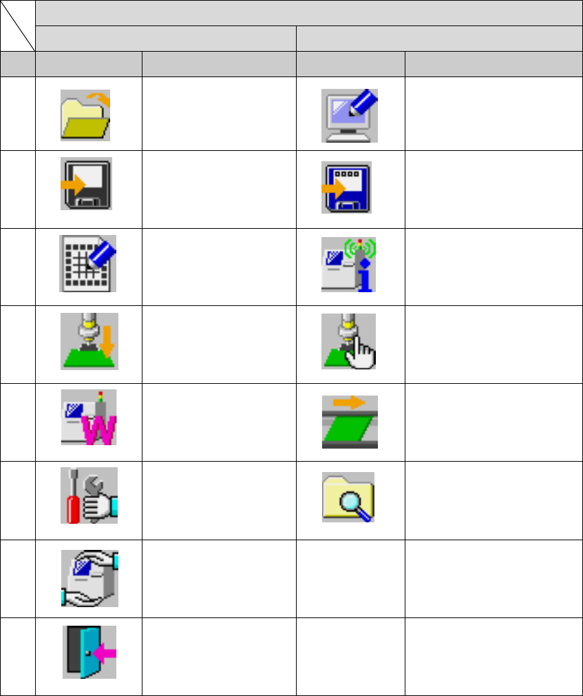 第 1 部 基本篇 第 1 章 设备概要 1 - 46 1-4-2 命令按钮的构成 将菜单各项中常 用的项目 设为命令按钮。 选择命令 按钮可启动该项 。 可通过鼠标或触 摸式控制 板 ( 可选项 ) 选择命 令按钮。 含有命令按 钮的画面如 下。 1. 桌面 2. 生产 3. 机器设置 4. 手动控制 5. 装置运行信息 以下显示各命令 按钮的构 造 , 并简要说明其 相应的使用方 法。