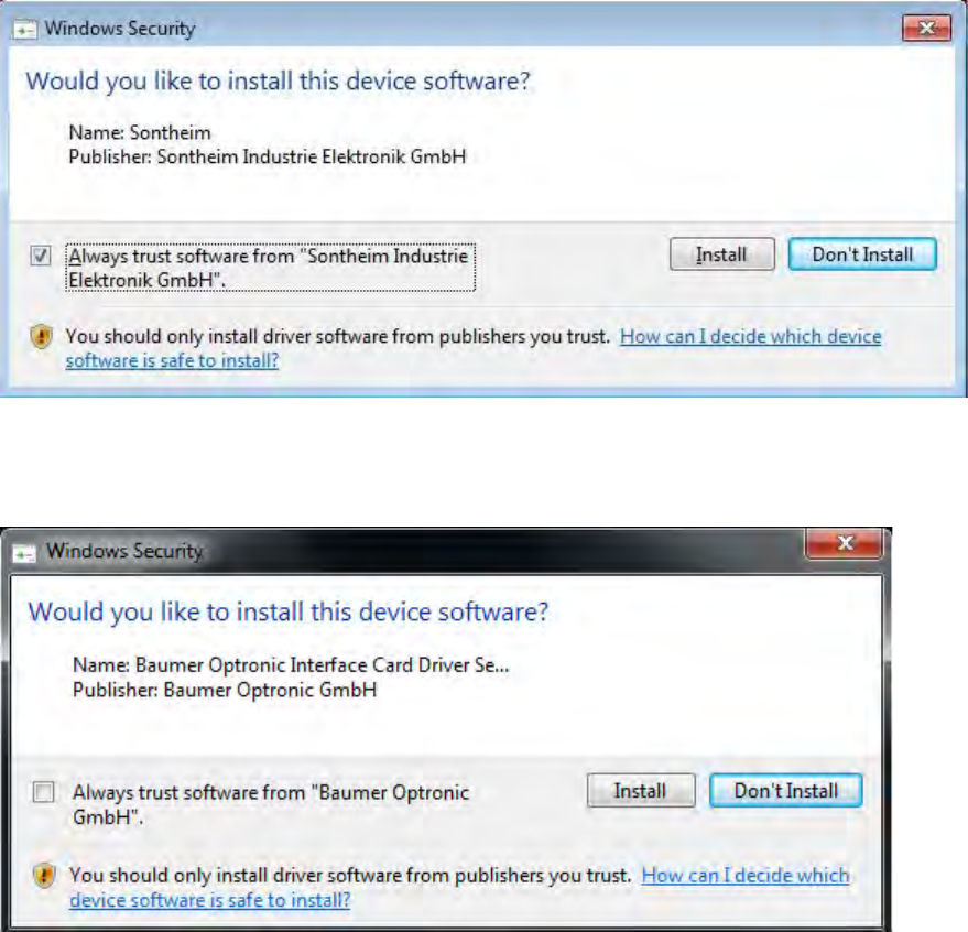 ► Activate the Always trust software from "Baumer Optronic GmbH" field.