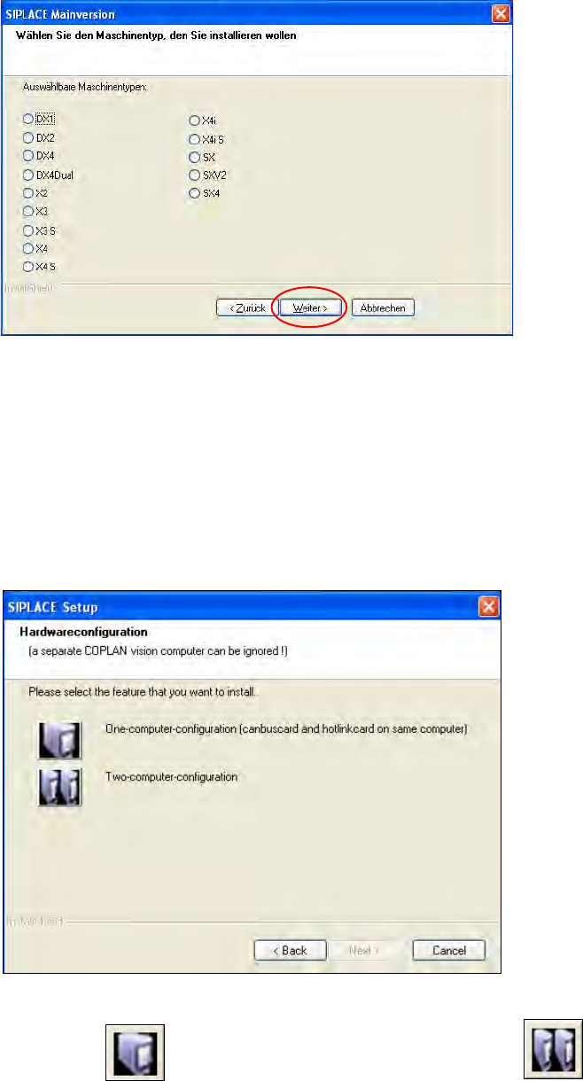 ► Select the option for the machine type for which the software is to be configured.