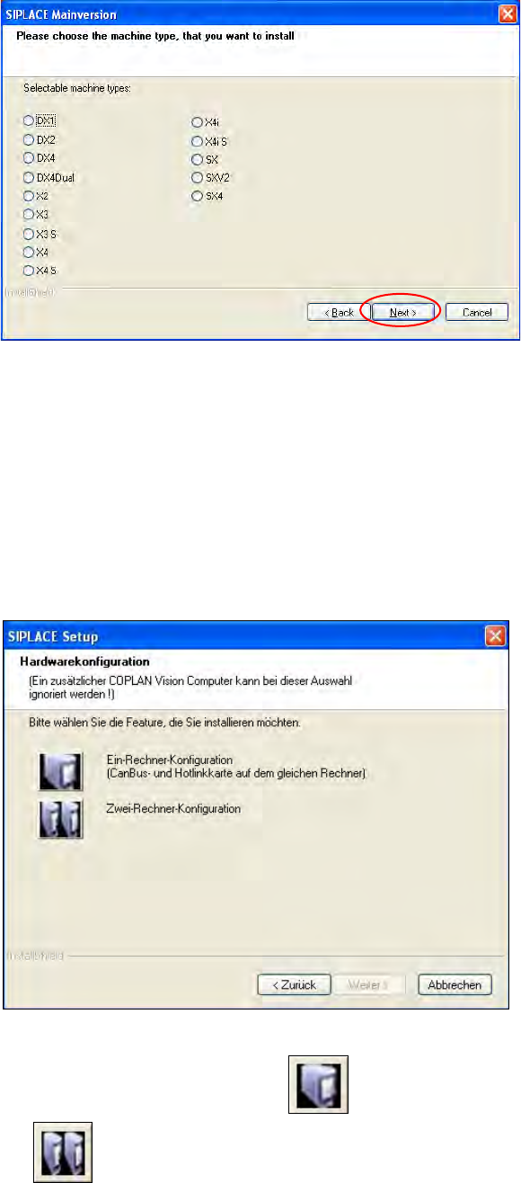 ► Aktivieren Sie die Optionsschaltfläche für den Maschinentyp, für den die Software konfiguriert