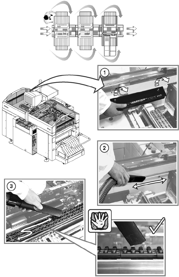 ③ 用吸尘器清洁收集贴片头的吸嘴交换器。