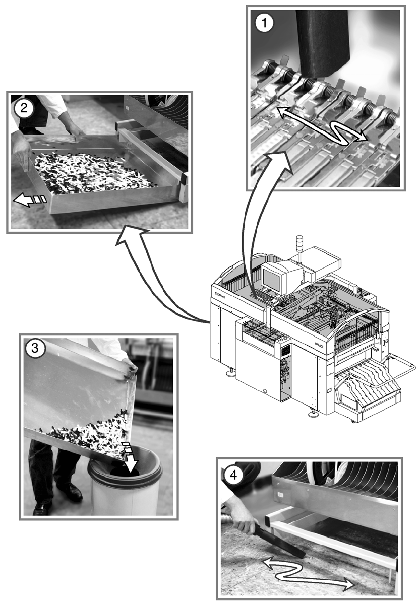 ② 用吸尘器清洁抛料仓四周,然后把抛料仓重新放置在贴片机中。