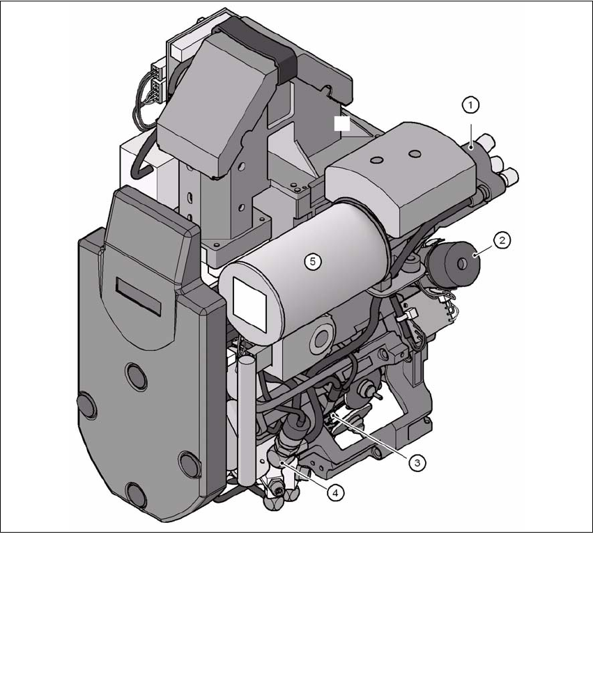 维护 预防性维护 S 10 每 4 个月维护 DLM2 贴片头 / 仅 S-27 HM 2003 年 3 月版 70 10 每 4 个月维护 DLM2 贴片头 / 仅 S-27 HM 12 段位器收集贴片头 DLM2 的结构 10 10 图 10.0 - 1 12 段位器收集贴片头 DLM2 的结构 10 10 (1) 真空发生器 (2) Dp 旋转机构轴 (3) 带有 12 段位器光栅盘的星形轴 (4) 阀空气接触 (5) 消声器