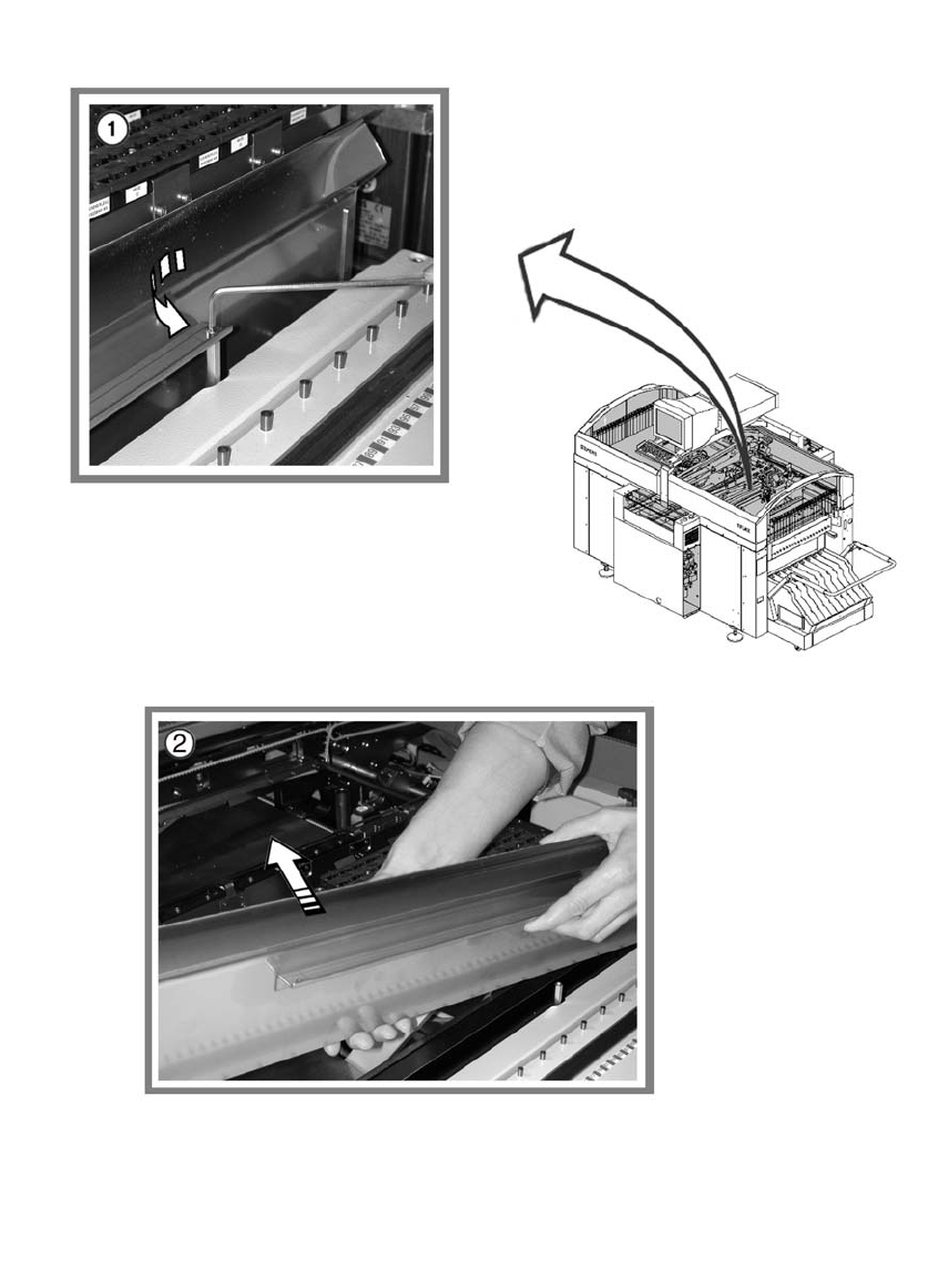 ① 拧下废料带导轨槽上的 2 个螺丝。