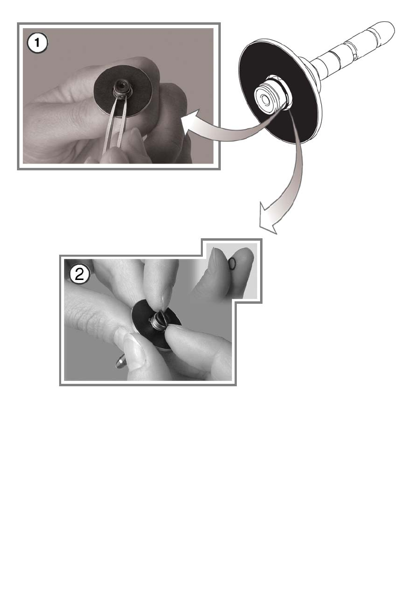 ② 摩擦 Unisilkon L250L (最好在手指之间),润滑 O 形圈。然后通过虹吸杯将 O 形圈小心拉到