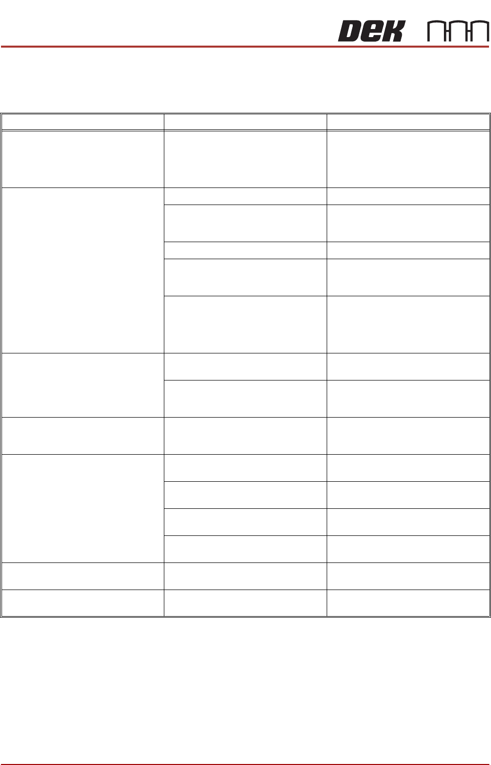 The following table contains some of the most common problems that may be