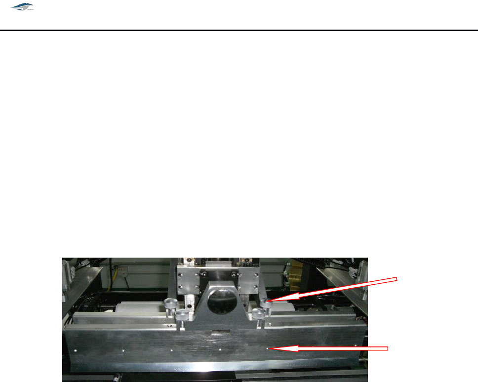 移动刮刀横梁到适合位置,松开刮刀头上螺钉 1 取下刮刀压板;