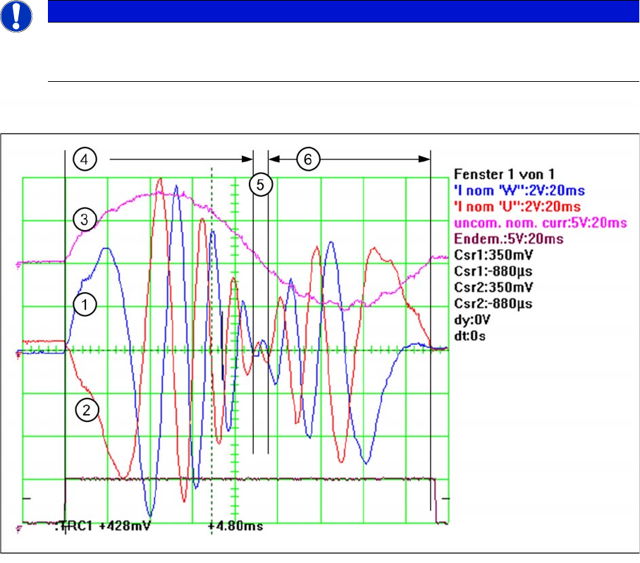 The uncommutated motor current nominal signal (3) and the motor current signals (1) (2) of an AC motor