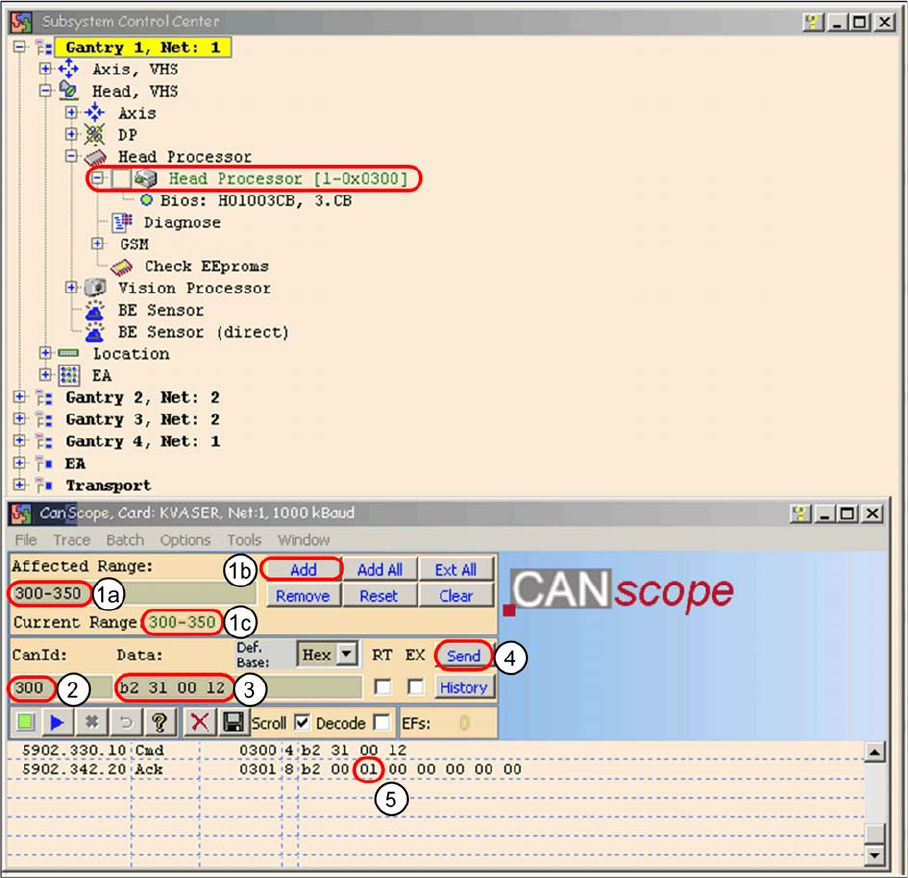 ► This means, to check the head interface, head adapter and intermediate distributor use the CAN ID