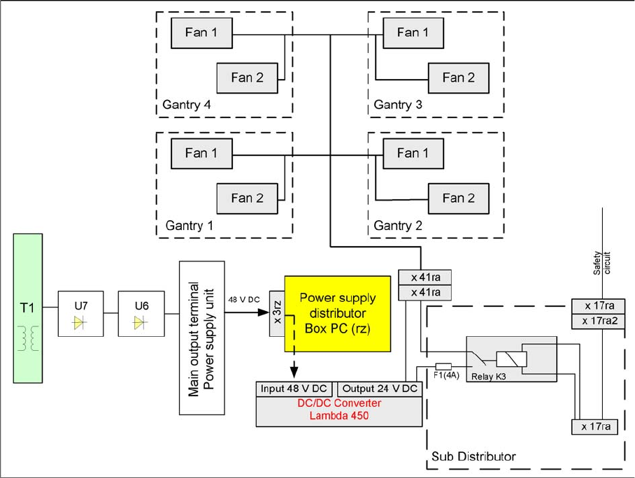 The fans are supplied with 24V from the computer unit by the DC/DC converter and are switched via the