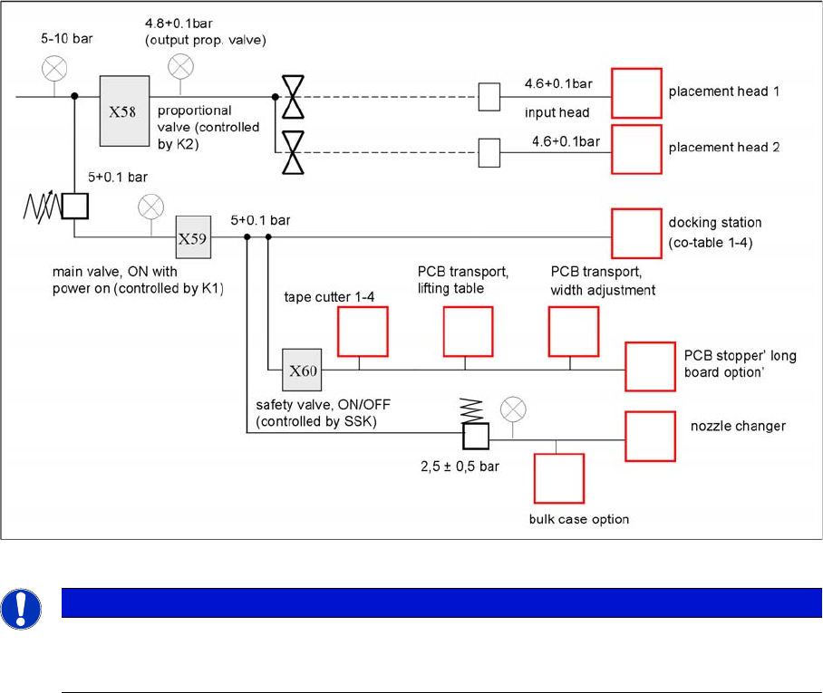 The X58 proportionate valve regulates the compressed air to 4.8 +0.1 bar for the placement head.