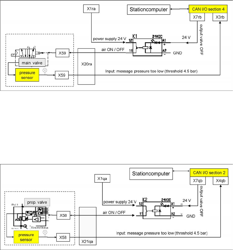 controlled by relay K1, located in sector 4 (subdistributor). If the pressure falls below 4.5 bar, the CAN