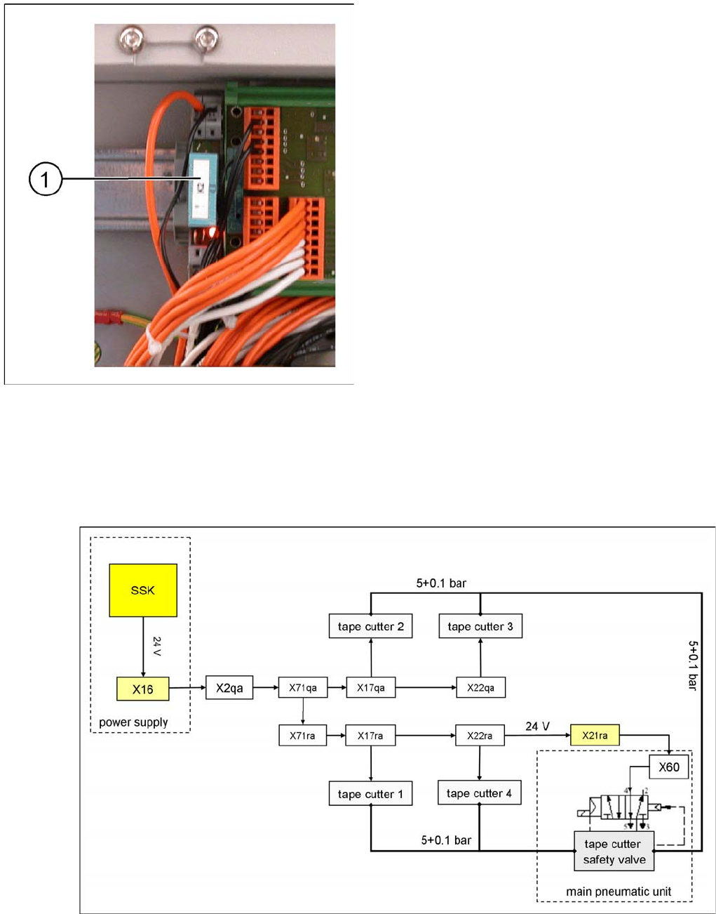 the tape cutter 1-4, plus the PCB conveyor will no longer be supplied with compressed air. The valve is