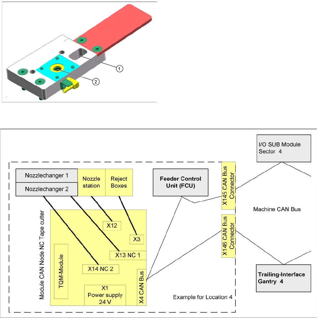 C&P20A Pneumatic Plan for Nozzle Changer Nozzle changer Student Guide SIPLACE X-Serie and X4I SW70x (AL2) 262 The nozzle changer is controlled via a so-called CAN node. This is integrated into the machine CAN bus. Th…