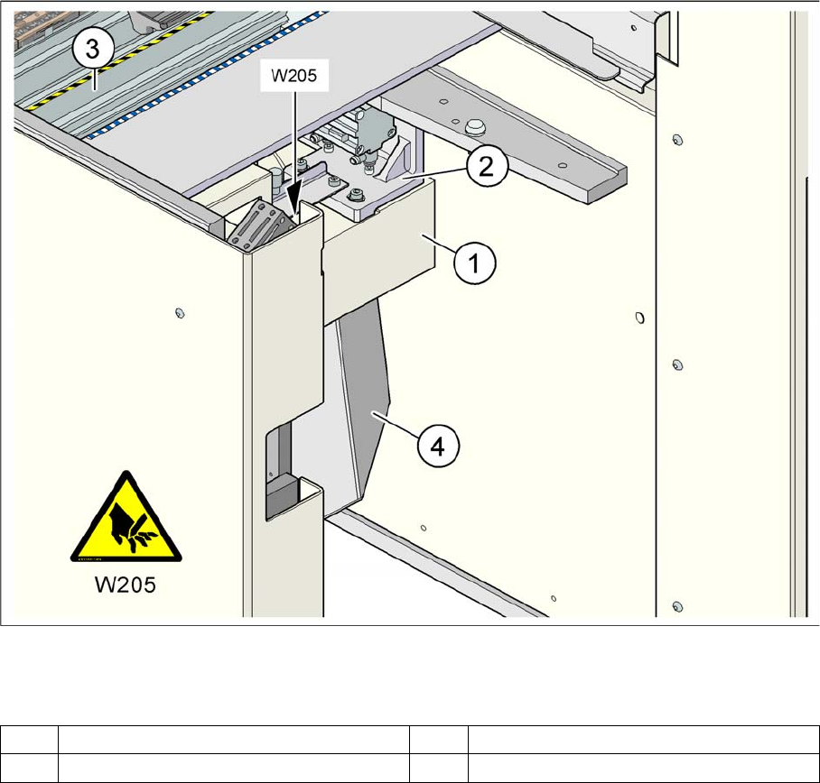2.2.3.4 Warning label W205 on the cross bar below the tape cutter